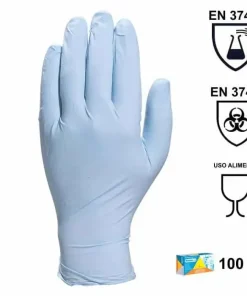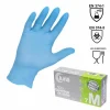 Guantes nitrilo biodegradables de color azul de la marca Luna para trabajos en el sector sanitario, mecánico, alimentación o uso particular.