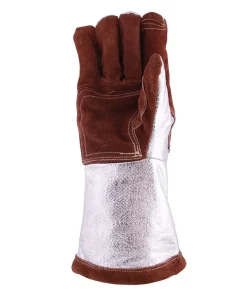 Guantes para temperatura alta de hasta 350ºC modelo Alcrisol de la marca 3L fabricados en fibra Preox aluminizada y reforzada con cuero serraje especialmente indicado para trabajos en altos hornos, soldadura y metalúrgia,