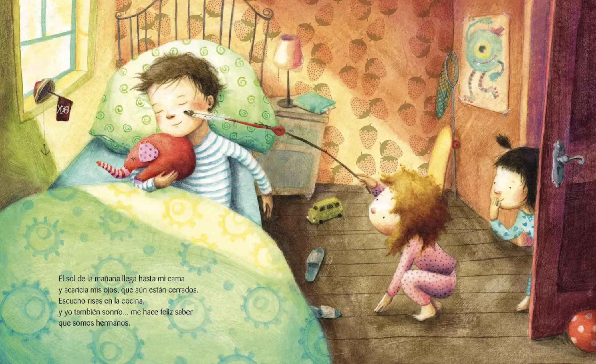 Es cierto que a veces nos peleamos cuando queremos los mismos juguetes, pero al caer la noche nos abrazamos y nos quedamos dormidos, mientras leemos historias sobre duendes. Hay tantas cosas en las que nos parecemos! Y algunas en las que somos distintos. Pero estoy seguro de una cosa: siempre estaremos juntos, para apoyarnos. No importan las tardes de tormenta ni la sombras de la noche que vengan a visitarnos. Hemos aprendido tanto el uno del otro… Hemos descubierto que la noche y el día, aunque parezcan tan distintos, forman parte de una misma melodía.