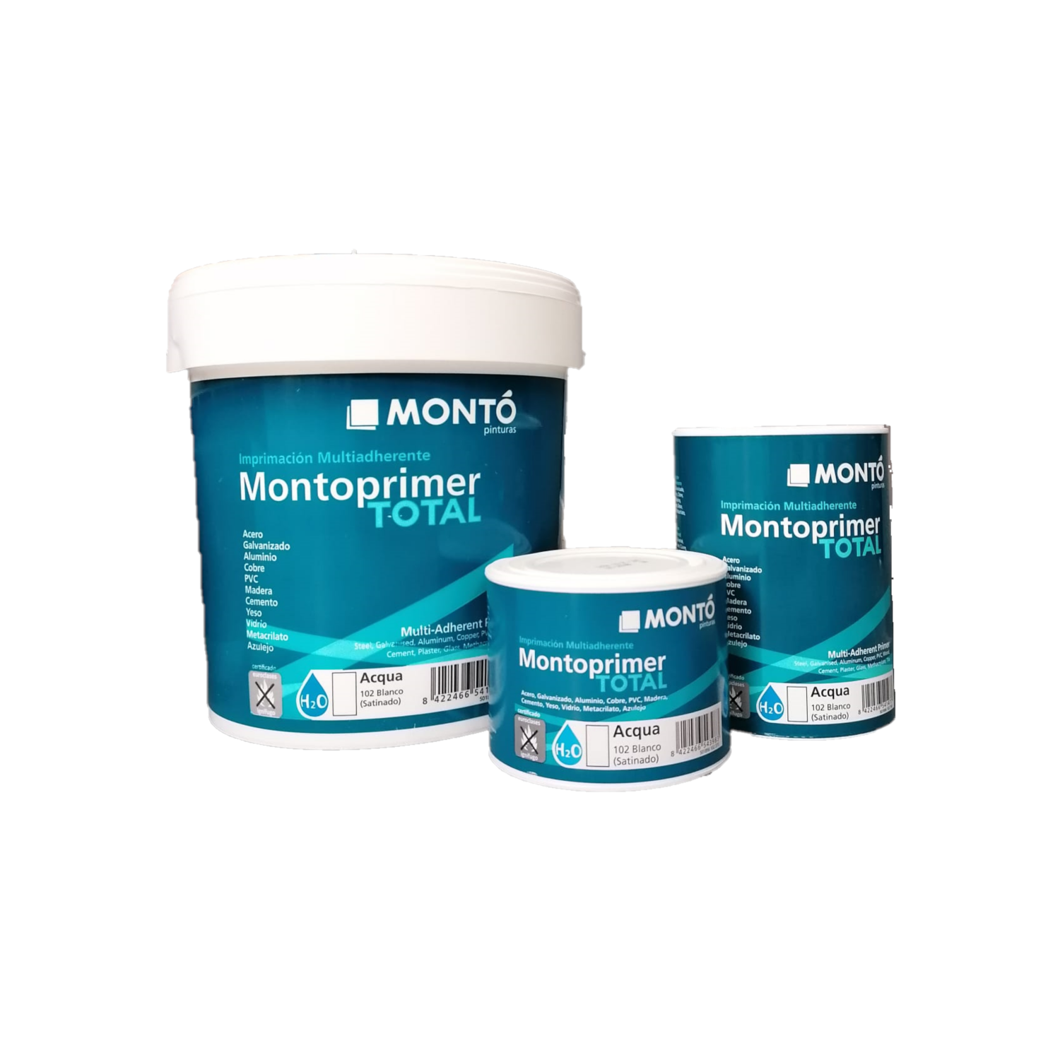 Montoprimer Total Acqua es una imprimación al agua monocomponente multiadherente de excelente adherencia al soporte y de fácil aplicabilidad. Su secado es rápido e inodoro. No es necesario lijar para repintar, es repintable con la mayoría de pinturas y, además, los repintados pueden realizarse a largo plazo sin alterar su propiedad. Cuenta con la certificación Euroclases según norma UNE EN 13501-1:07 B-s1-d0, y con el certificado de Adherencia UNE EN ISO 2409:13 sobre acero, hierro galvanizado y aluminio, ambos por laboratorio externo. En cuanto al espesor recomendado por mano/capa: 100-150 micras húmedas (60-90 micras secas), aplicable en 1 ó 2 capas.