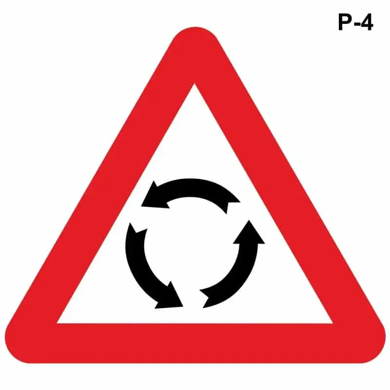 Señal de tráfico rotonda o circulación giratoria modelo P-4 con sus opciones de homologadas MOPU y señales económicas de advertencia de peligro.