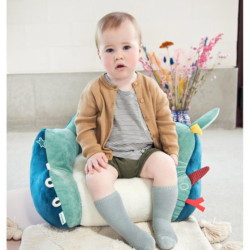 Es una estructura muy cómoda, un sillón cómodo y de colores vivos para sentar a tu pequeño hombrecito. El sillón, inspirado en el dragón Joe, está decorado con plumas de adorno.