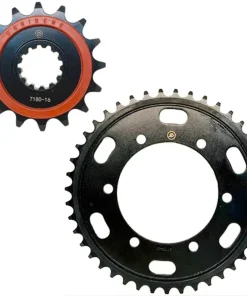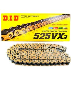 Los kits incluyen los engranajes tipo SILENT en la mayoría de los casos. En caso de falta de disponibilidad se sustituyen por las estándar sin perfil de goma. El kit recomendado es el de origen de fábrica, no obstante existen versiones con diferentes ratios para incrementar el rendimiento de la motocicleta en ciertas situaciones a gusto del usuario. Busque en la web o preguntenos. Este kit incluye una cadena de la marca DID de 108 pasos de modelo 525-VX