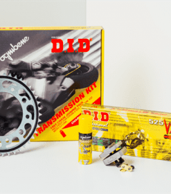Los kits incluyen los engranajes tipo SILENT en la mayoría de los casos. En caso de falta de disponibilidad se sustituyen por las estándar sin perfil de goma. El kit recomendado es el de origen de fábrica, no obstante existen versiones con diferentes ratios para incrementar el rendimiento de la motocicleta en ciertas situaciones a gusto del usuario. Busque en la web o preguntenos. Este kit incluye una cadena de la marca DID de 108 pasos de modelo 525-VX