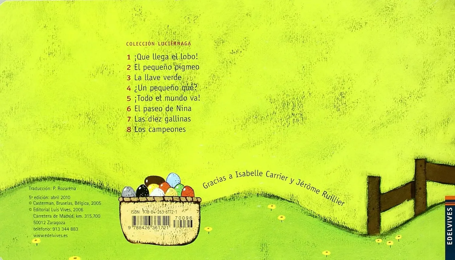 Libro con una estructura repetitiva y texto rimado, próximo a la narración oral y muy del gusto de los niños. Se abre y cierra con una cuarteta explicativa y el grueso del libro se compone de pareados, uno por página, que enumeran los increíbles sitios donde ponen huevos las gallinas de distintos colores. Las llamativas y coloristas ilustraciones dan vida y fuerza a este texto humorístico.