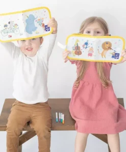 El tamaño compacto, ligero y flexible de esta pizarra permite llevarla de viaje, de vacaciones, de excursión o a salidas familiares. Los y las peques podrán escribir y dibujar en cualquier lugar una y otra vez, desarrollando así su imaginación y creatividad y mejorando al mismo tiempo sus habilidades motoras.