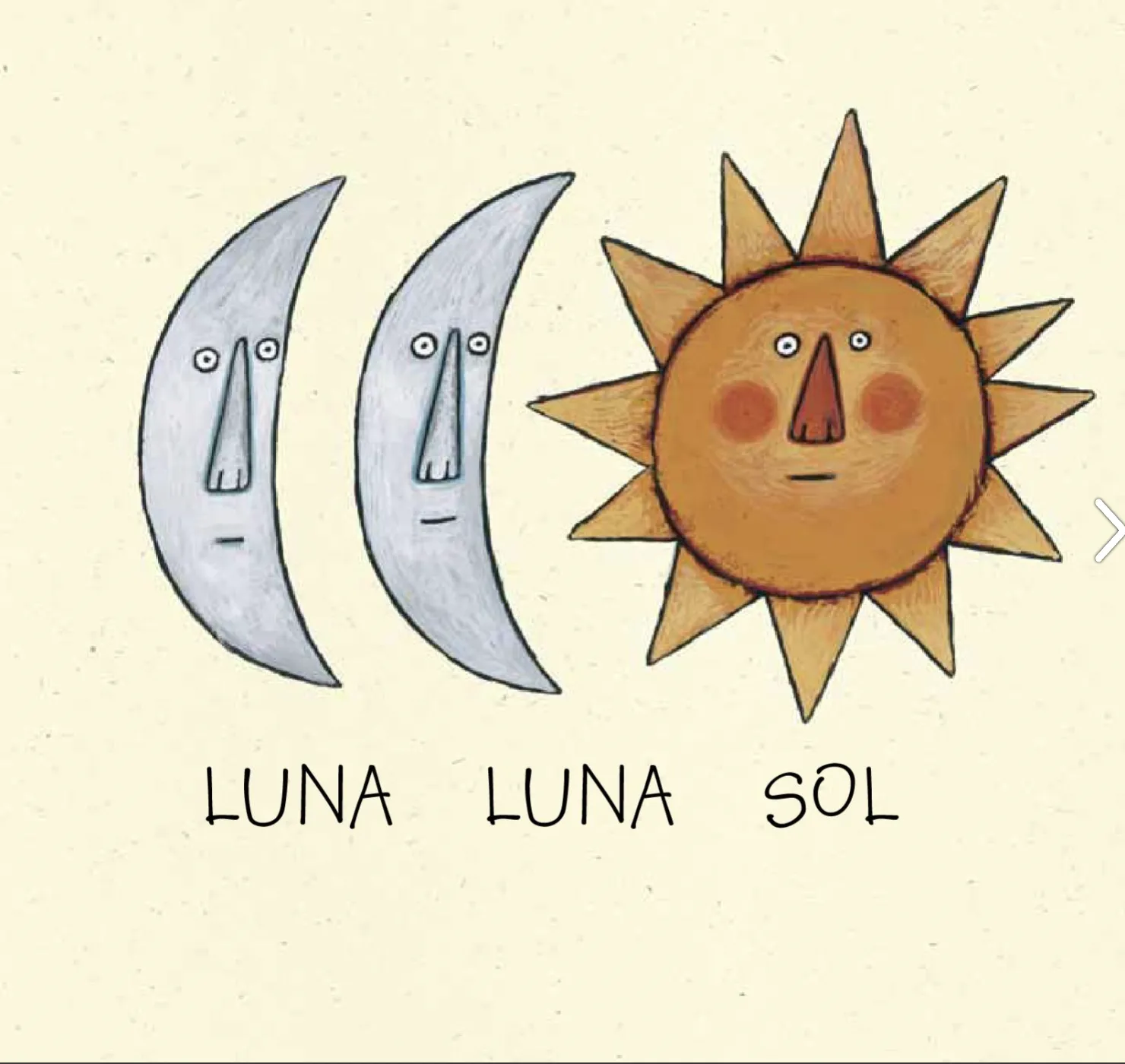 Poema visual recitable, a base de dibujos rimados y ritmados. La luna y el sol, tan lejanos y próximos, tejen versos y estribillos desde el cielo hasta estas páginas de cartón.