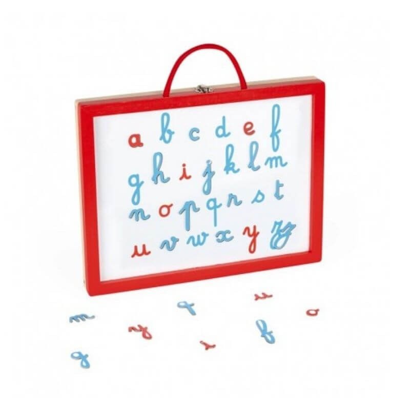 Un maletín lleno de letras cursivas o manuscritas con las que aprender el abecedario aparte de divertirse.