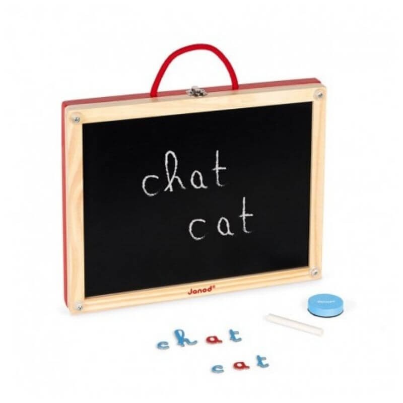 Una pizarra blanca borrable y magnética para aprender a escribir sus primeras palabras.
