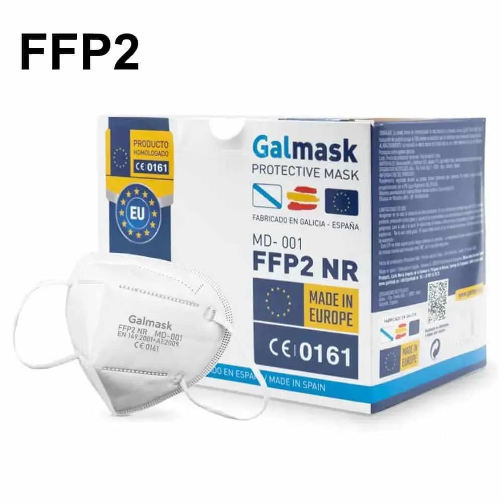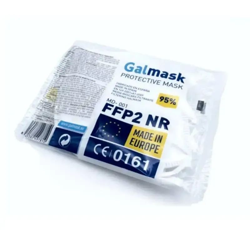 Mascarilla seguridad FFP2 modelo Galmask muy cómoda en el tacto, fabricada 100% en España con un nivel de protección del 95% con protección frente a partículas tóxicas.
