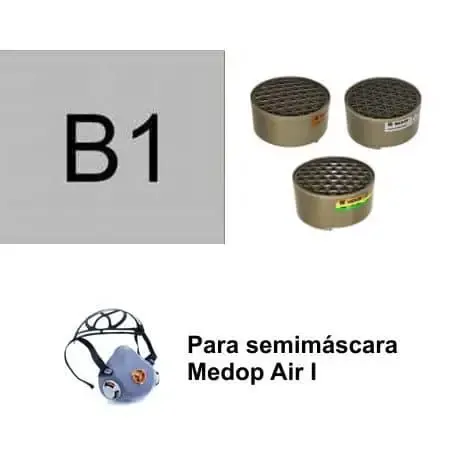 Filtros respiratorios con protección B1 compatibles con las semimáscaras de un sólo filtro Medop Air I para protección contra ambientes con gases y vapores inorgánicos.