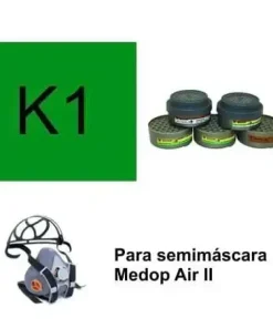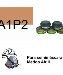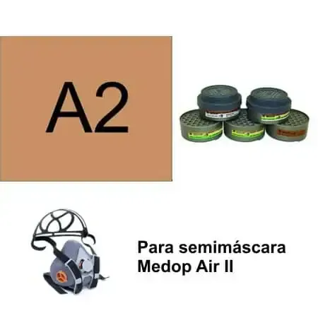 Filtros respiratorios con protección A2 compatibles con las semimáscaras de dos filtros Medop Air II para protección contra ambientes con gases y vapores orgánicos.