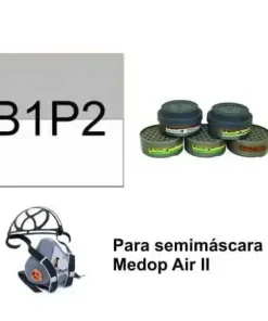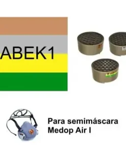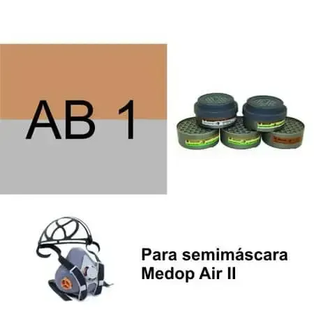 Filtros respiratorios combinados con protección AB1 compatibles con las semimáscaras de dos filtros Medop Air II para protección contra ambientes con gases y vapores orgánicos e inorgánicos.