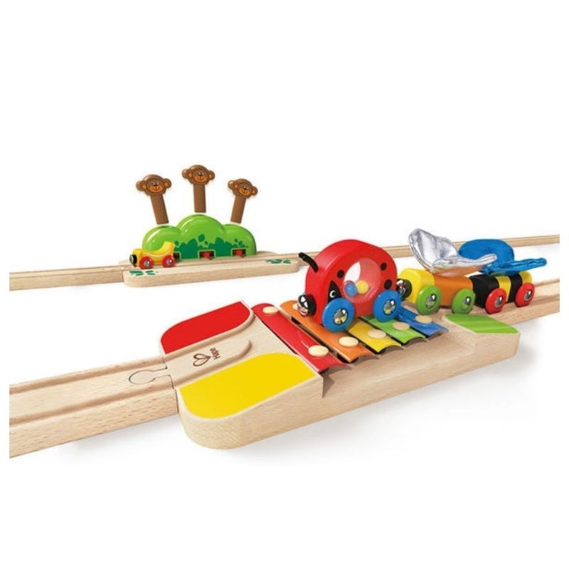 Un circuito cuyos protagonistas es el juego de los monos saltarines y las vías xilófono. Cuando el tren pase por ellas desatará la atención de tu pequeño así como su entusiasmo.