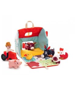 Contenido: una casita granja, 1 tractor, 1 granjero y 6 animalitos de la granja: el burrito Ignace, el cerdo Simon, la vaca Rosalie, la oveja Yvon, la gallina Paulette y el pato Gaspard.