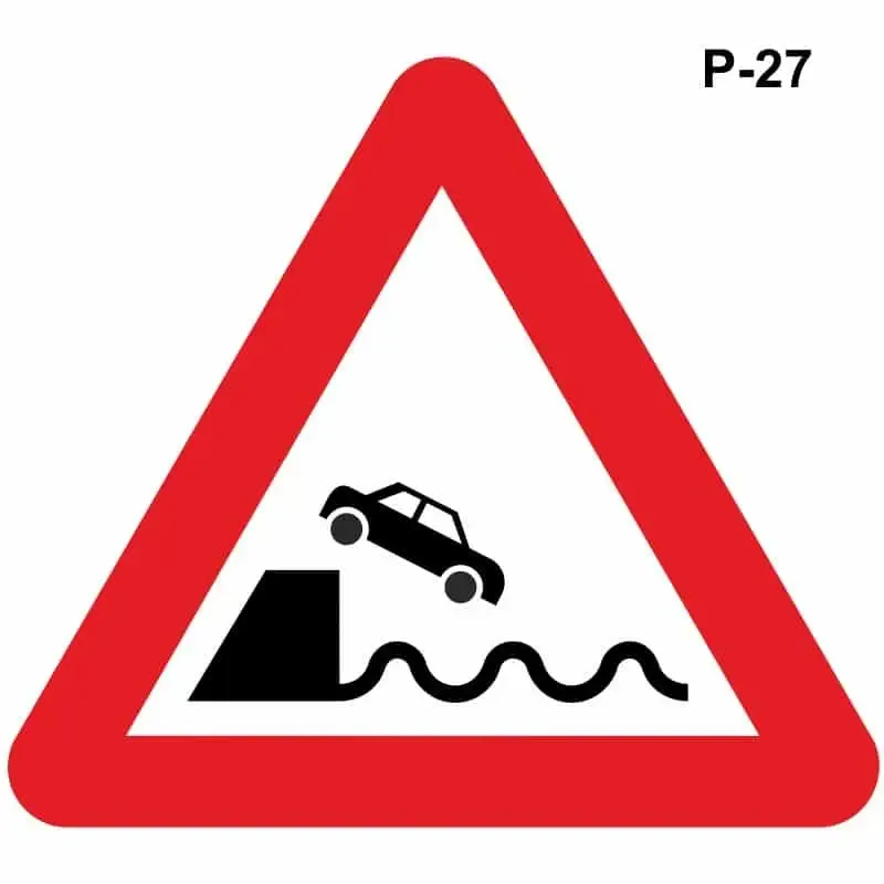 Esta señal nos advierte del peligro de que la vía en la que estamos desemboca en un muelle o en una corriente de agua.