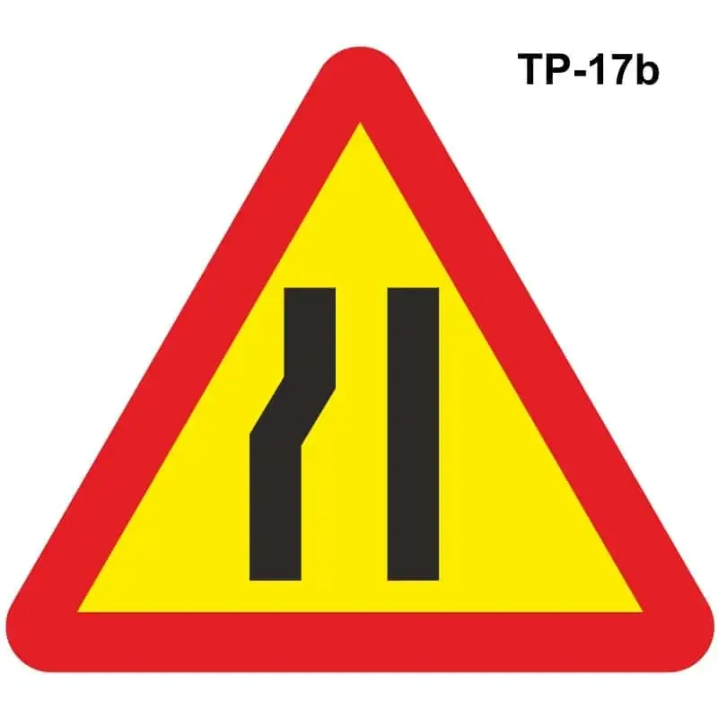 Esta señal nos informa del peligro ante la proximidad de un tramo de carretera que se estrecha a su lado izquierdo.