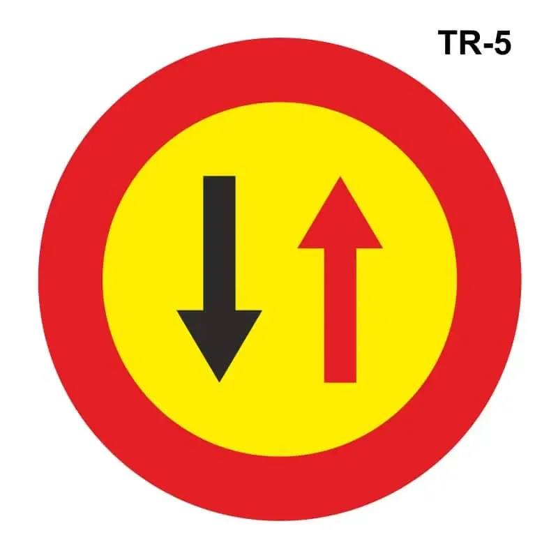 Esta señal significa que en un tramo de paso estrecho en una vía, tienen preferencia de entrada al paso los que vengan en sentido contrario.