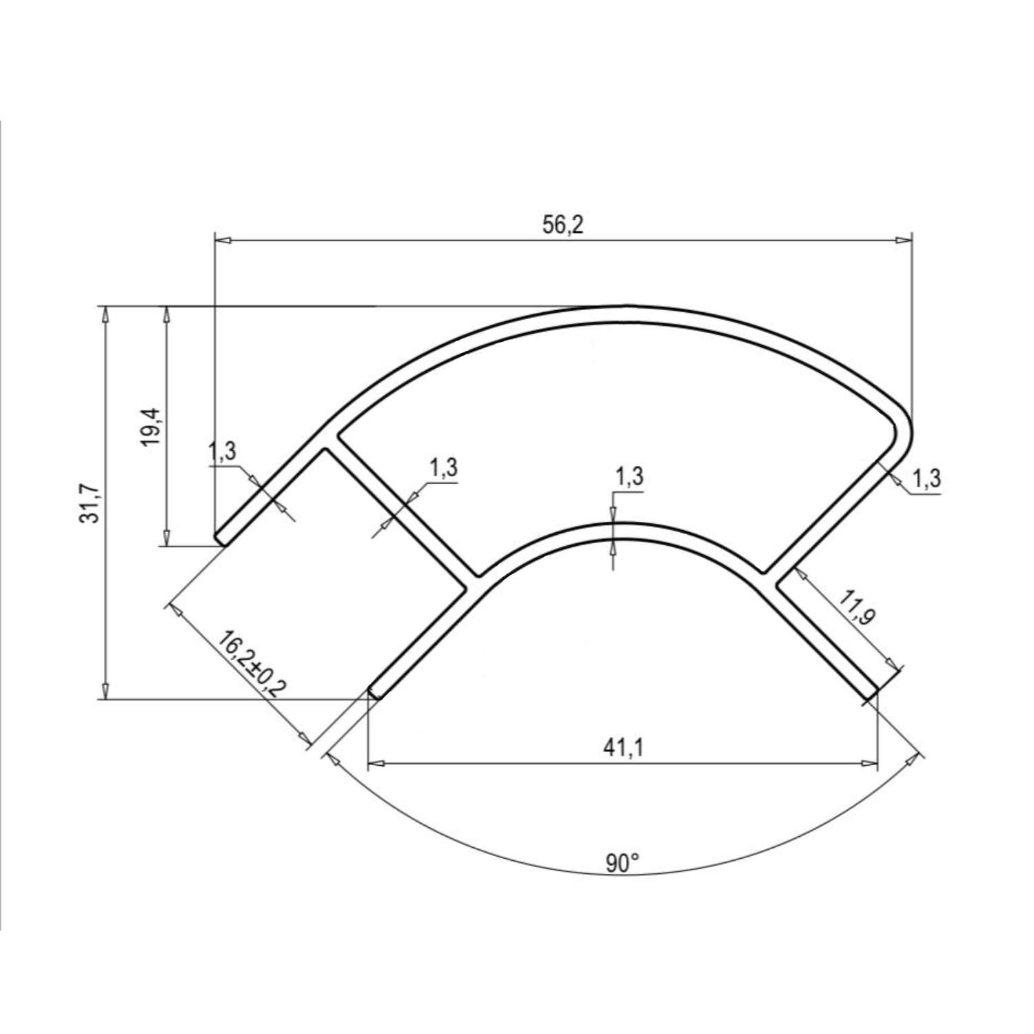 Características Pack 6 Uds Perfil Aluminio Ángulo Abierto Con Borde 2m