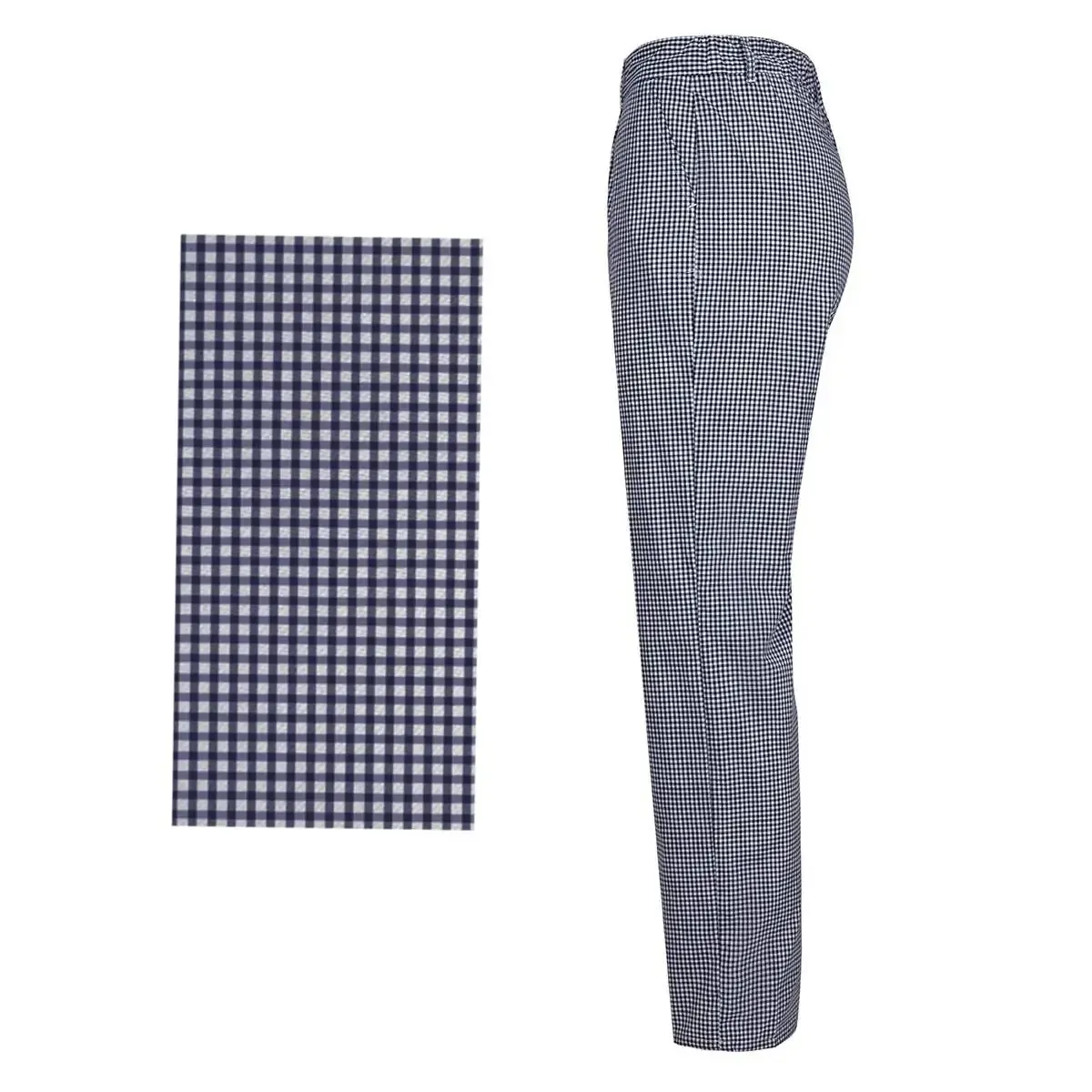 Este pantalón para cocina es un poco más fino y con los cuadros más oscuros que el modelo Velilla 350.