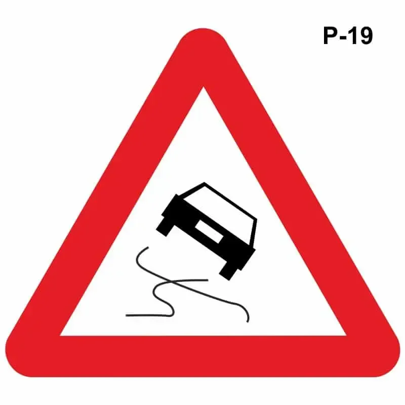 Características de la señal de trafico de peligro por pavimento deslizante :