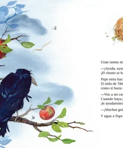 En su casita, Pepe Pom estará bien protegido del mal tiempo. Pero, antes de que empiece a llover, decide ir a avisar a su amigo Alberto, un viejo cuervo que vive en las ramas más altas del manzano.