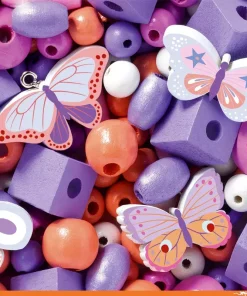 El cofre de cuentas de madera, «Mariposas», contiene más de 450 cuentas para crear hermosas piezas de bisutería. Un surtido de colores y formas bien pensadas para un resultado siempre armonioso.