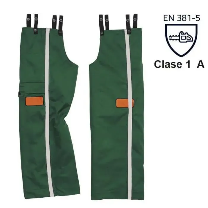Prenda laboral con certificación EN 381-5 y nivel clase 1 fabricado con unas fibras que bloquean la motosierra en caso de cortar la prenda.
