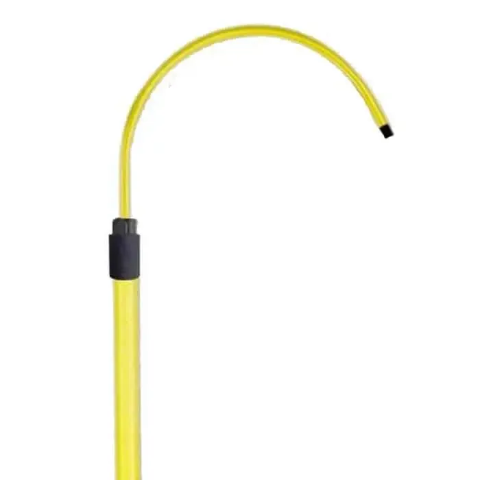 La pértiga de salvamento tiene la función de salvaguardar las distancias y facilitar el rescate de una persona que ha tenido un accidente por electrificación sin poner en riesgo su integridad.