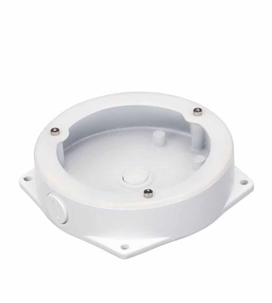 - Caja de conexiones circular para cámara mini-domo (HDBW2) con anclaje de 3 puntos.