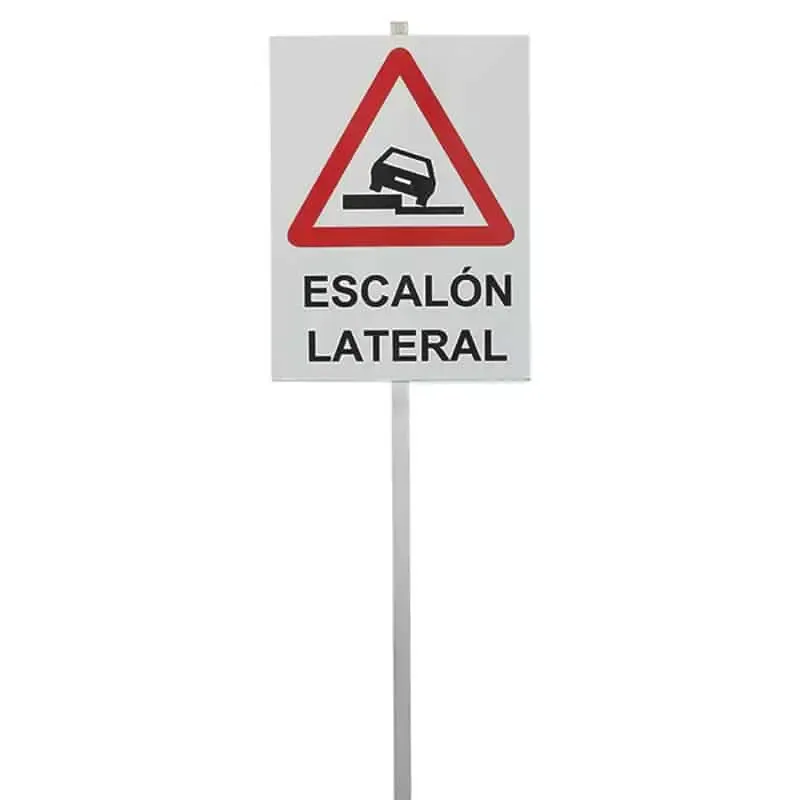 - Panel con la señal P-30 y texto de «ESCALÓN LATERAL»