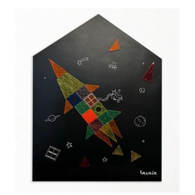 Es una pizarra versátil, te permite pegar tus Imanix en su superficie magnética, lo que facilita la composición de formas.