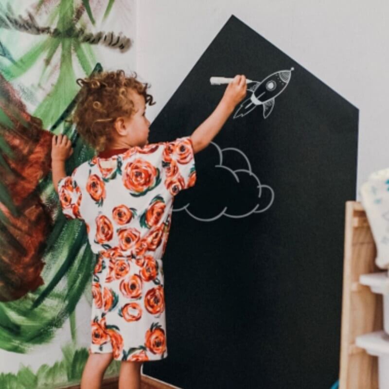 Y de la misma esta pizarra te permite también dibujar o escribir con tiza.
