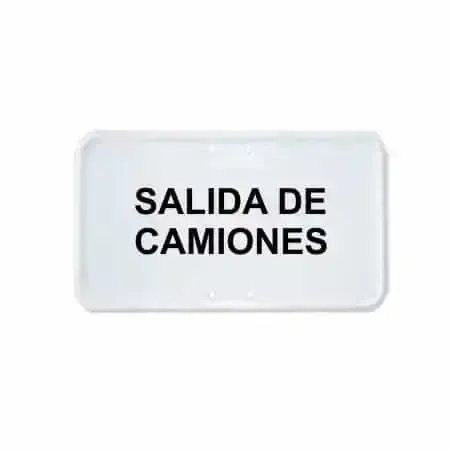Placa complementaria con texto : Salida de camiones