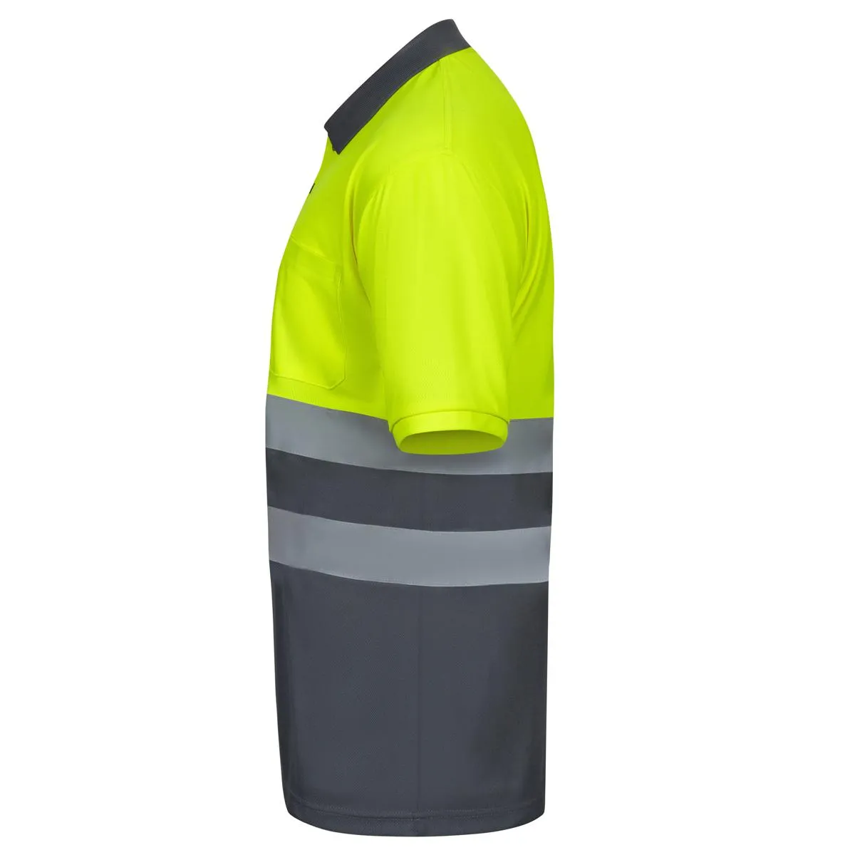Este polo está a medio camino de una prenda de alta visibilidad con una prenda laboral, permitiendo mantener una imagen corporativa a la vez que introduce componentes de alta visibilidad.