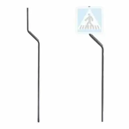 Poste circular desplazado para señales de tráfico fabricado en acero galvanizado con el tramo final desplazado para facilitar la visibilidad de las señales de tráfico en zonas estrechas o en lugares donde hay que sortear una obstrucción que impida instalar un poste recto. También se pueden utilizar en espejos de tráfico.