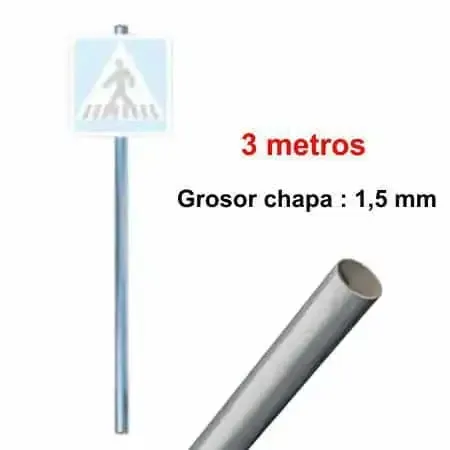 Poste circular para señales tráfico y espejos de 3 metros fabricados en acero galvanizado con un grosor en chapa de 1,5 mm y dos anchuras diferentes 50 y 60 mm para instalar señales de tráfico y espejos de tráfico.