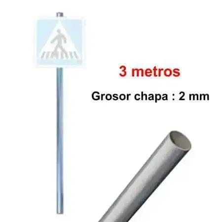 Postes de 3 metros circulares fabricados en acero galvanizado con un grosor en chapa de 2 mm y dos anchuras diferentes 60 y 80 mm para instalar señales y espejos de tráfico.