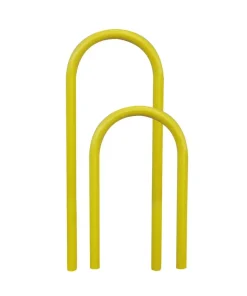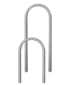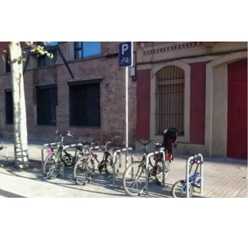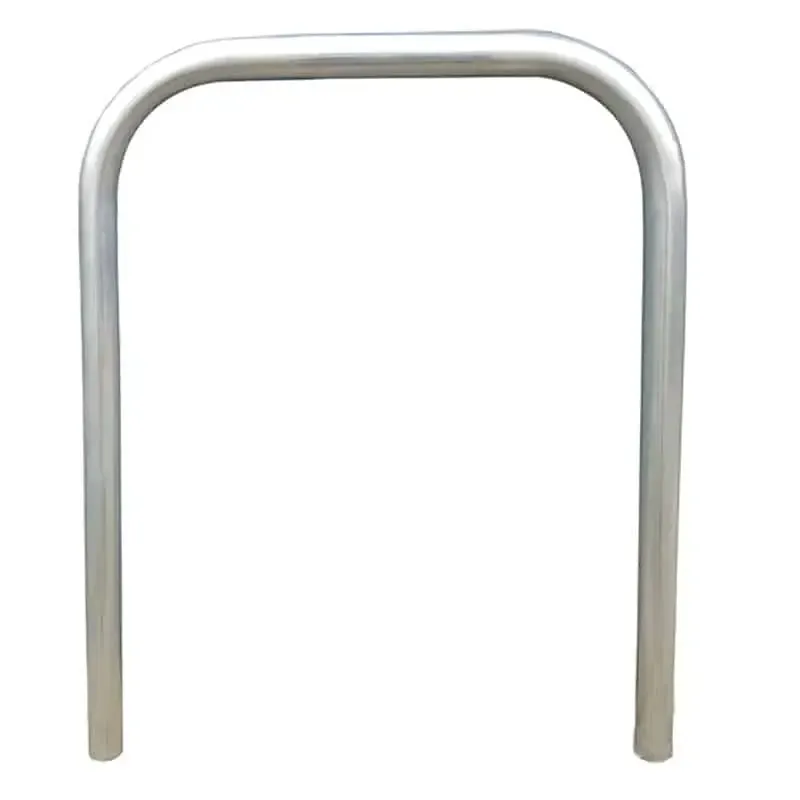 El protector para peatones está fabricado en acero inoxidable o acero galvanizado y tiene forma de U invertida con una doble función; actúa como protector para peatones y como aparcabicicletas.