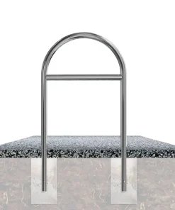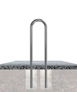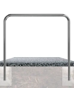 - ATORNILLADOS Y UNIDOS A UNA PLETINA: Unimos los soportes a la base mediante una pletina horizontal ( No incluida ) que está al ras del suelo, formando generalmente módulos de 4 soportes. Atornillamos estos módulos al suelo con tornillos de seguridad. Este sistema de fijación es adecuado para espacios exteriores y especialmente útil en ubicaciones donde se puede requerir la retirada temporal del aparcamiento de bicicletas, como en eventos populares.