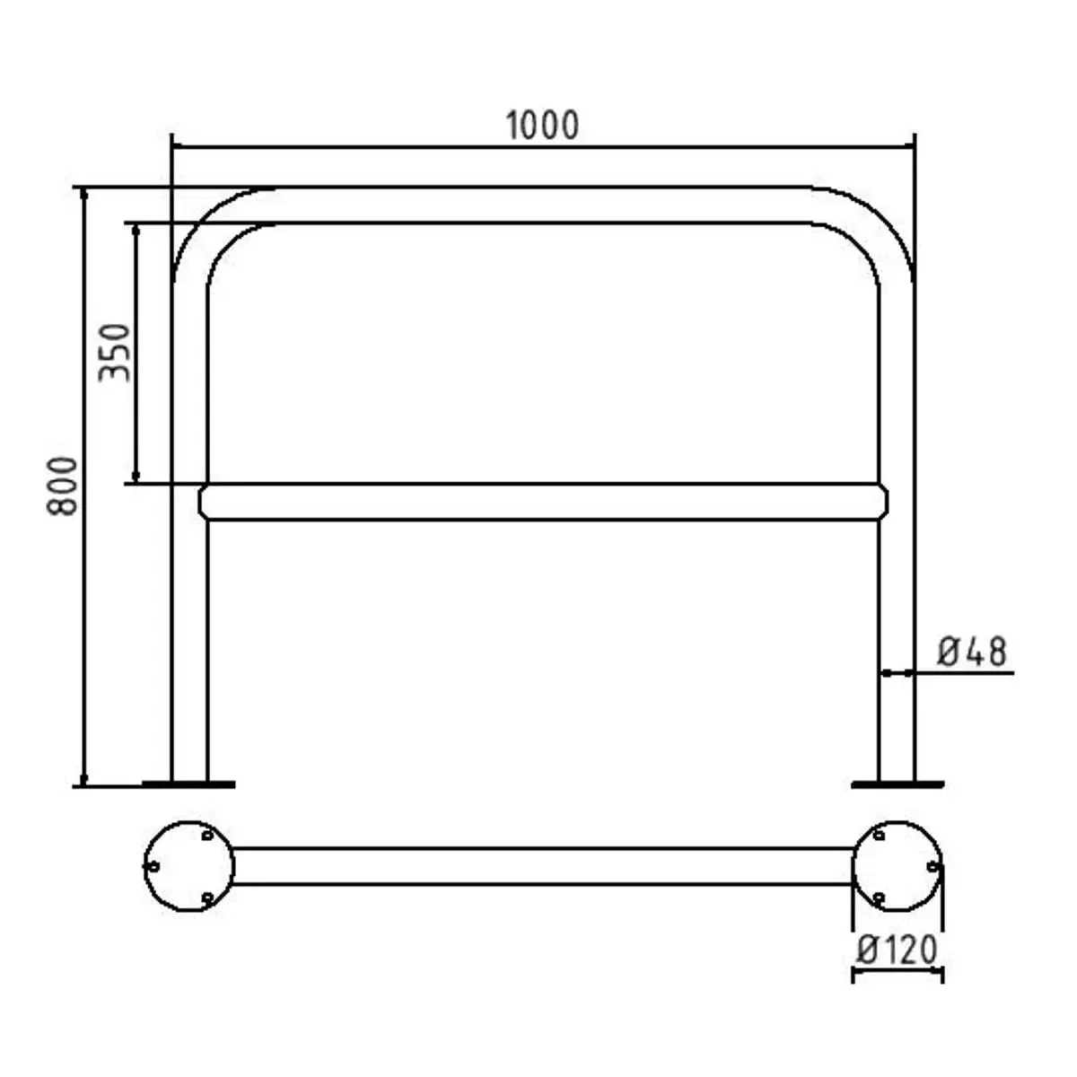 Protector con barra para atornillar al suelo de la marca alemana Schake serie 449 con gran acabado y fabricado en acero inoxidable para mayor durabilidad.