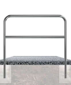 Protector peatonal con travesaño fabricado en acero inoxidable para una mayor durabilidad y resistencia en condiciones climáticas adversas y con superficie rectificada ofreciendo un gran acabado.
