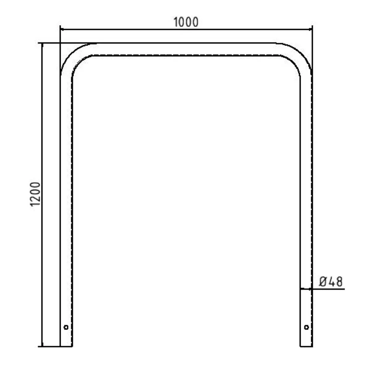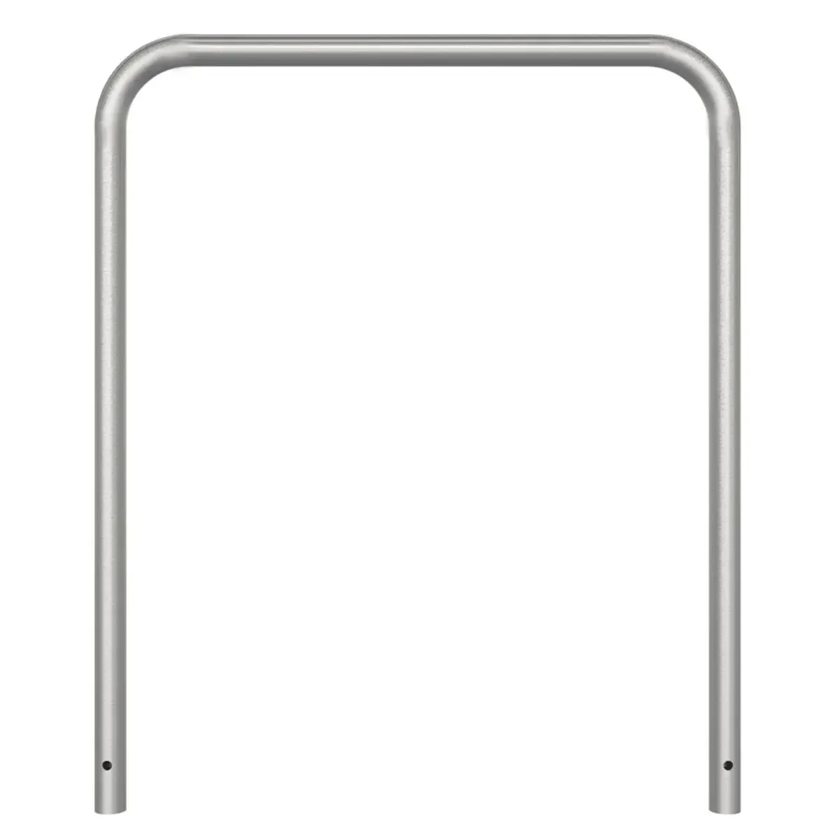 Protector peatones de acero inoxidable con diseño en U invertida y con 100 cm de ancho.