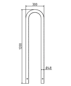 Protector peatones de acero inoxidable de tipo universal con diseño en U invertida y con 30 cm de ancho.