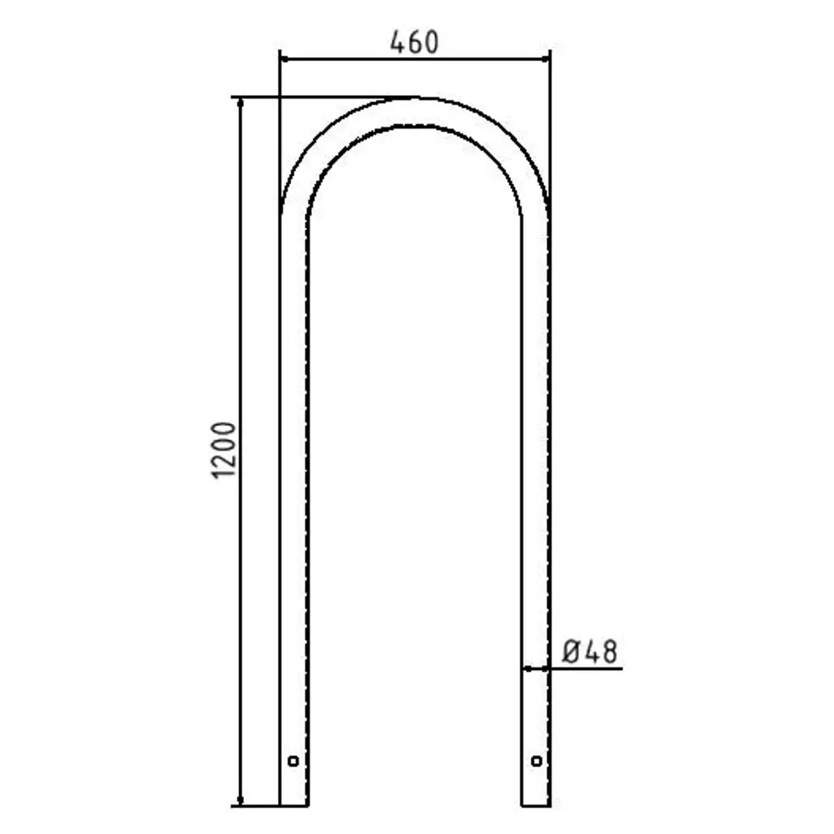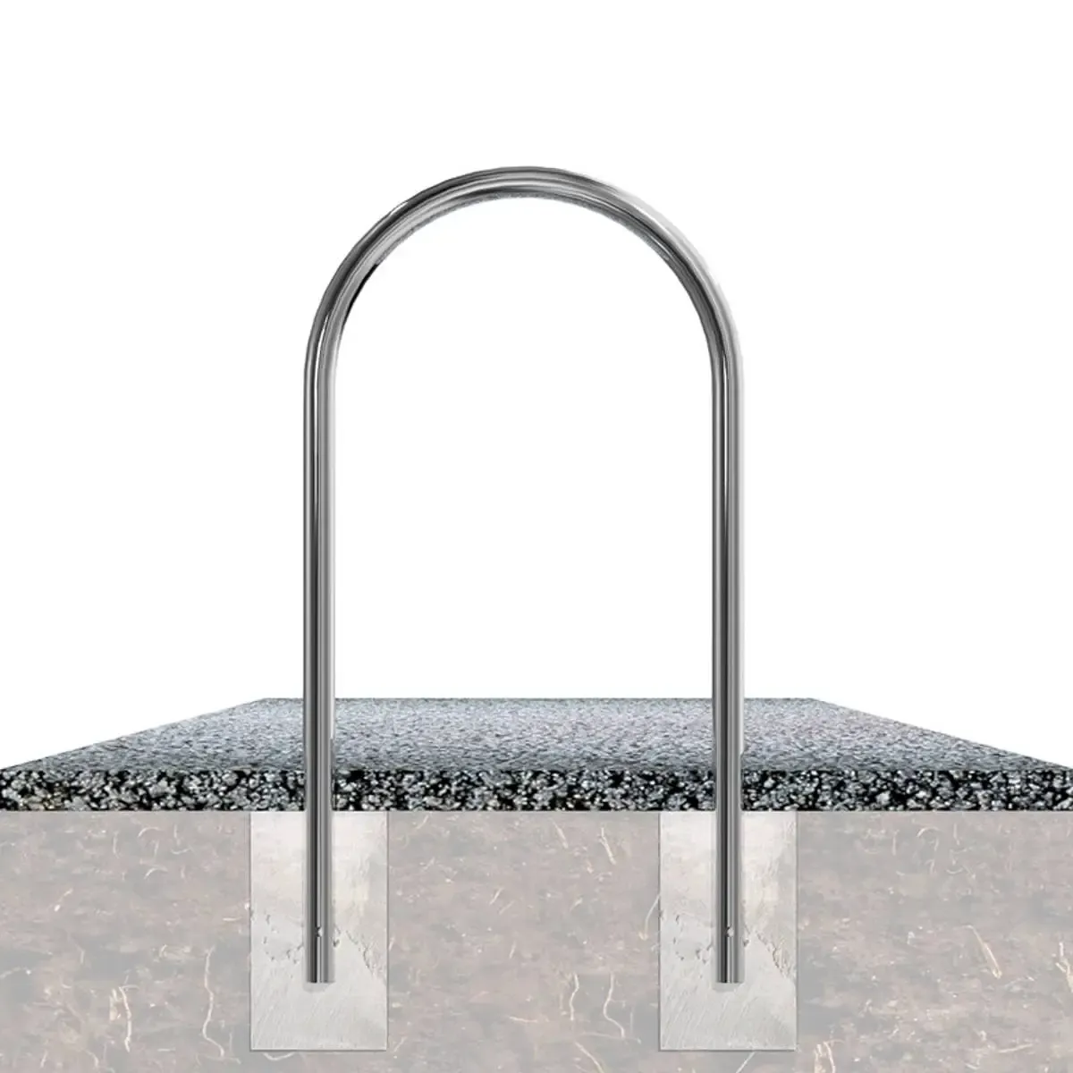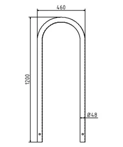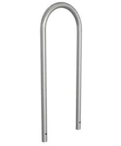Soporte de acero inoxidable para protección peatones con diseño en U invertida y con 46 cm de ancho.