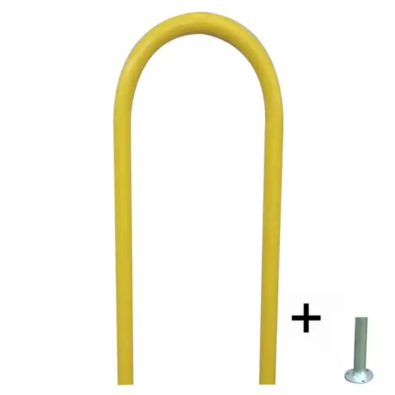 Protectores peatones lacado amarillo en forma de U invertida, ideal para el marcaje de entradas a parques y como protección a los peatones ante peligro de atropello.