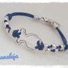 Pulsera de doble cuero con plaquita Salud cristal rosa y libélula. Hecha a mano con bolas irregulares de zamak con baño de plata, tubo con cristal del mismo color y cierre botón.