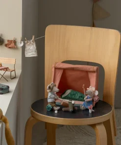 Esta ratita está bien equipada para una excursión por la naturaleza salvaje. Tiene imanes en las manos, va vestida para caminar durante días y lleva su saco de dormir para pasar las noches bajo las estrellas.
