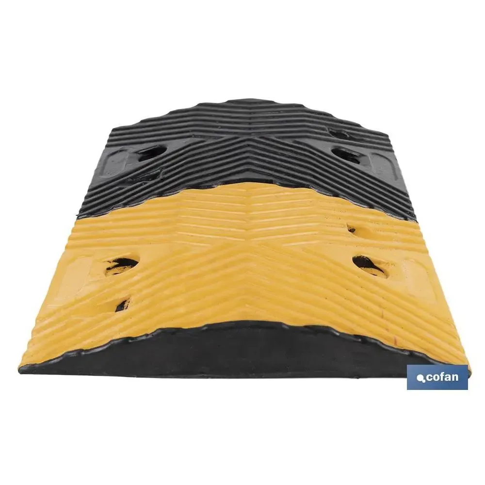 Reductores de velocidad de 50 x 35 x 5 cm para obligar a reducir la velocidad excesiva de los vehículos ( se aconseja una velocidad de 20 km/h para este reductor ), especialmente en zonas de especial sensibilidad vial tales como aproximaciones a pasos de cebra, zonas escolares, obras, cruces, zonas residenciales etc.
