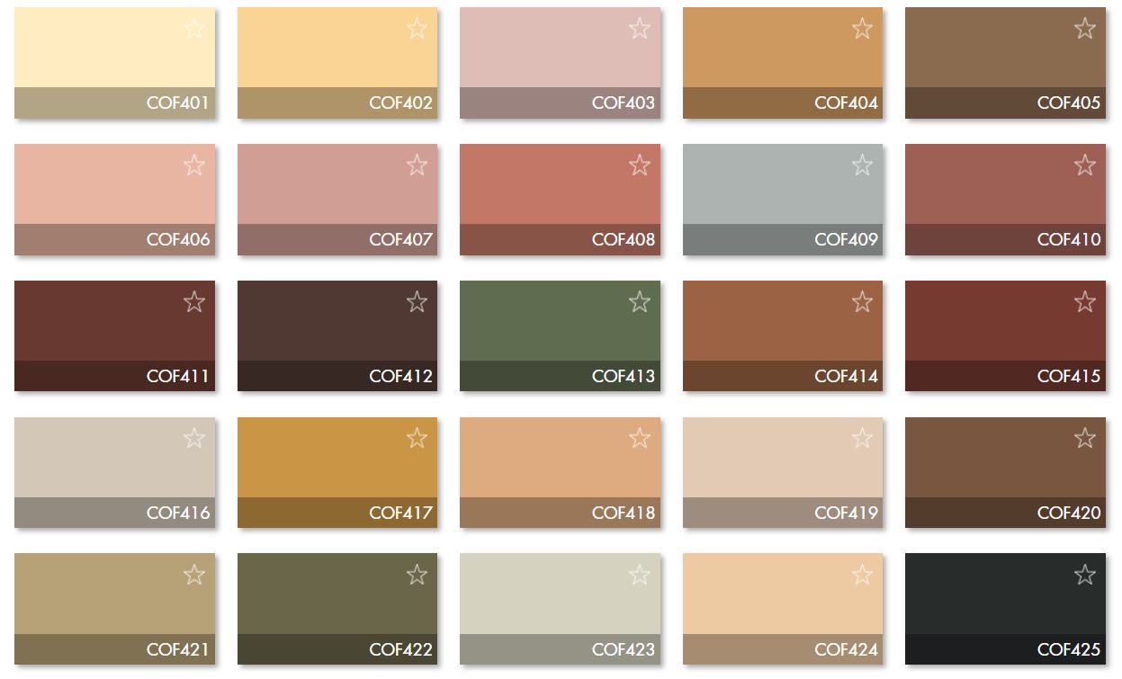 Posibilidad de crear cualquier acabado de la Carta de colores COF (ver imágenes asociadas). El precio final del producto dependerá en este caso del tamaño y color concreto escogido. Pónganse en contacto con nosotros a través de nuestros canales de contacto (formulario, correo electrónico, teléfono fijo o móvil) para más información.